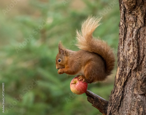 © Sarah, Obraz premium scottish red squirrel eating an apple