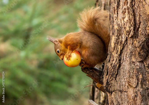 © Sarah, Obraz premium scottish red squirrel eating an apple