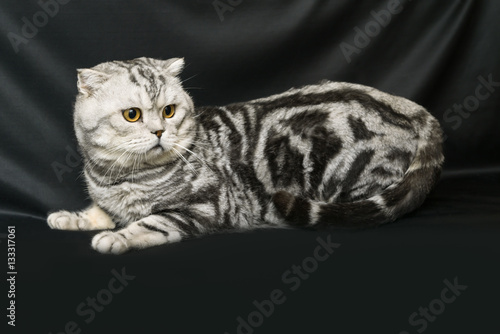 Naklejka premium Scottish straight cat on a dark background