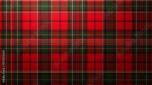 © Ernesto, Obraz premium Scottish tartan pattern in rich red, green, and hints of white.