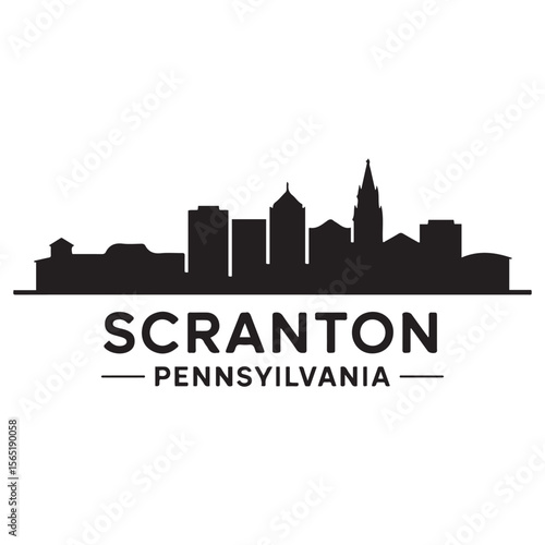 © firoz, Fototapeta premium Scranton, PA skyline horizontal banner. Scranton, Pennsylvania. Vector template for your design. Vector black silhouette. with white background