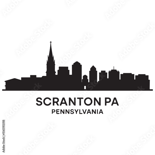 © firoz, Naklejka premium Scranton, PA skyline horizontal banner. Scranton, Pennsylvania. Vector template for your design. Vector black silhouette. with white background