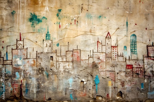 © NexGen Stock, Fototapeta premium scratched city wall texture with faint graffiti