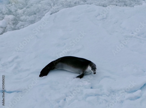 Obraz premium Screaming crabeater seal on ice floe in antarctic ocean, Antarctica