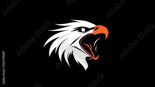 Obraz premium Screaming eagle head profile, dark background, logo design