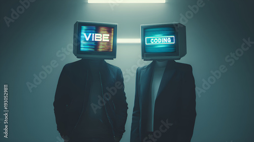 © utaem2022, Naklejka premium Screen heads representing vibe and coding concepts