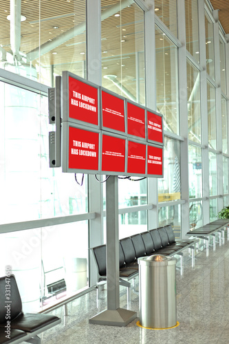 © Ivan, Naklejka premium screen of the airport that announce the lockdown