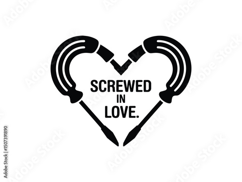 Fototapeta premium Screwed in love two screwdrivers heart shape design