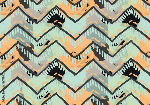 © Zebra Finch, Obraz premium Scribbled circles inked chevron brown green yellow