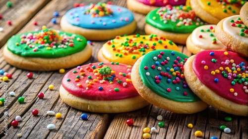 Fototapeta premium Scrumptious homemade sugar cookies, a close-up view on a rustic wooden table.