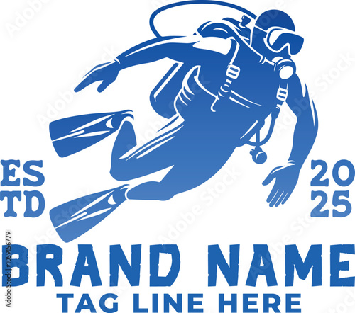© toonandlogo, Naklejka premium Scuba Diver Logo Design Concept