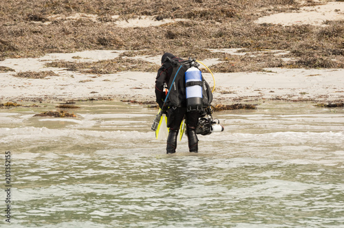 Obraz premium Scuba Diver on beach