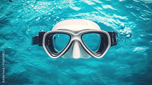 Fototapeta premium Scuba goggles with a sleek silicone strap on an ocean-inspired turquoise...