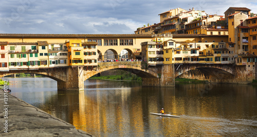 Obraz premium Sculling, Ponte Vecchio, Arno River, Florence, Italy