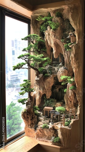 © projek, Obraz premium Sculpted miniature landscape in window alcove