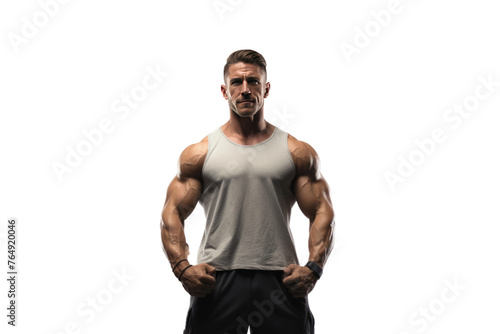 © Awais, Fototapeta premium Sculpted Serenity: A Man Strikes a Pose in Tank Top.