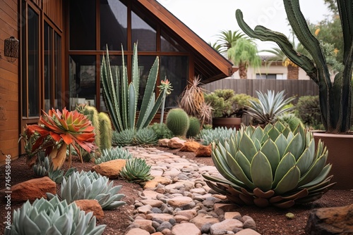 Fototapeta premium Sculpting Minimalist Desert Landscape: Backyard Beauty with Succulents and...
