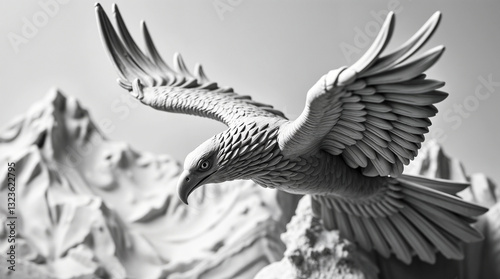 © alex, Obraz premium Sculptural clay art of an eagle in flight, close-up