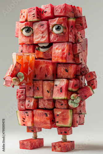 Naklejka premium Sculpture made of watermelon cubes, whimsical and colorful