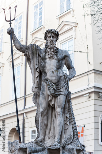 Obraz premium Sculpture of Neptune on the Market square (Rynok square) in Lviv, Ukraine.