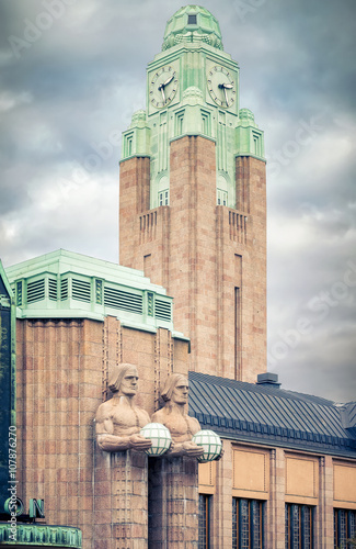Fototapeta premium Sculptures on facade of Helsinki main railway station