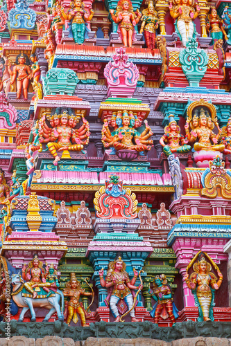 Fototapeta premium Sculptures on Hindu temple tower