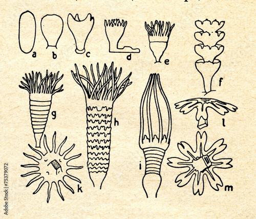 Fototapeta premium Scyphozoa:a-d polyp grows e-i polyp strobilates lm medusa