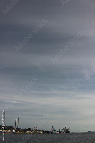 Fototapeta premium SDGs自然と地球環境!工場と太陽の光と水面のヒカリ