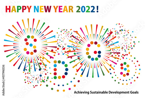 Obraz premium SDGsイメージの17色の花火の2022年年賀状テンプレート