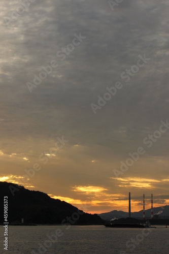 Obraz premium SDGs環境と自然!コンビナートと瀬戸内海の夕日 山口県周南市