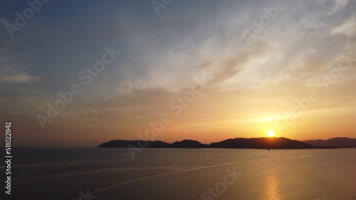 Obraz premium SDGs!輝く海面と太陽のHIKARI 地球の神秘な空模様#ドローン 空撮