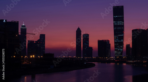 © karm, Fototapeta premium Sea And Buildings Night - Dubai