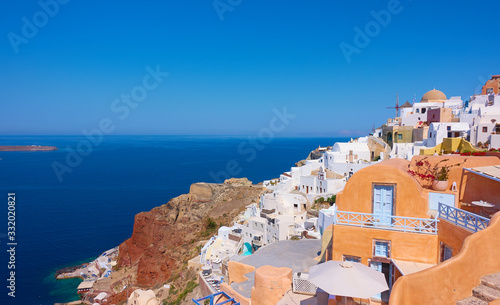 © Roman Sigaev, Naklejka premium Sea and Oia town in Santorini island