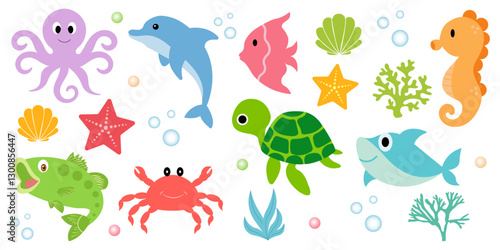 © Huma Fida, Fototapeta premium Sea animal collection. Vector illustration