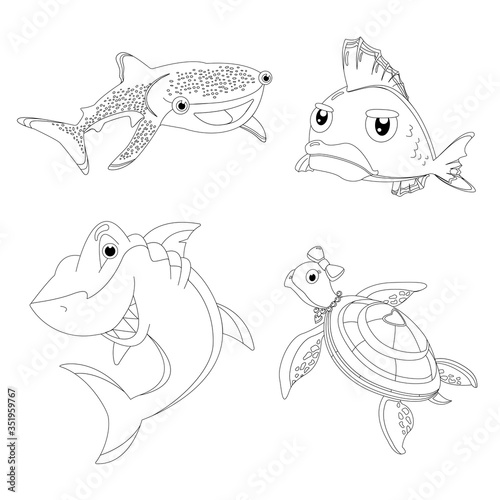 Fototapeta premium Sea animals and fish coloring book for children contour