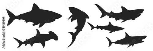 © Oleksandr, Obraz premium Sea animals. Sharks collection. Vector illustration on a white background.