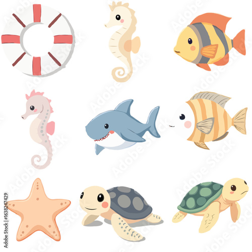 © Thomasphere, Naklejka premium Sea Animals Vector Set - Cute, Cartoon Themed Animal Designs