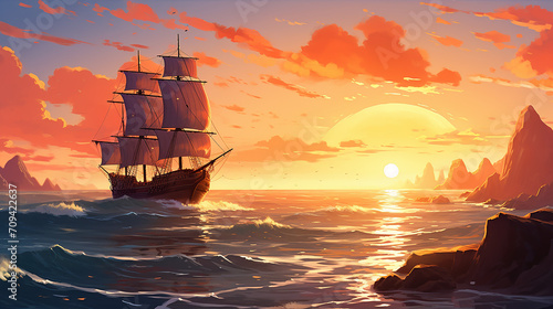 © Aura, Fototapeta premium sea background with beautiful sunset