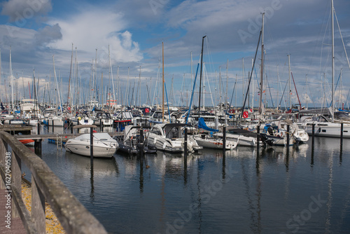 © Krystyna, Fototapeta premium Sea Bay with a view of snow-white yachts