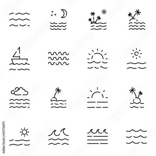 © Lalavida, Fototapeta premium Sea, beach, ocean icon set. Simple sea outline icons sign vector illustration.
