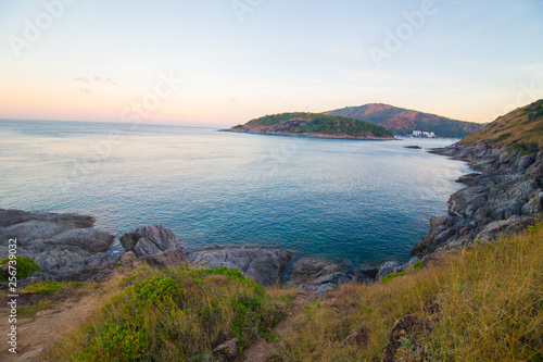 © themorningglory, Fototapeta premium Sea coastline sunset island with colourful sky cloud