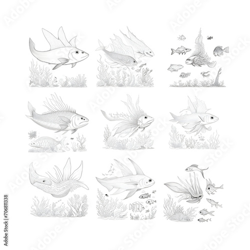 Fototapeta premium Sea creatures, kids coloring book, fish