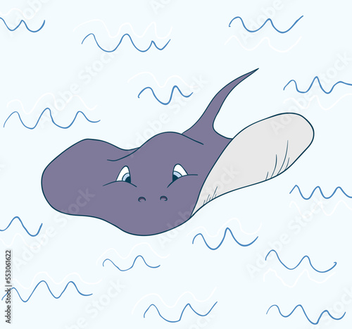 © Umoko, Naklejka premium Sea Devil fish, ray. Cartoon character. Funny animal in pastel colours