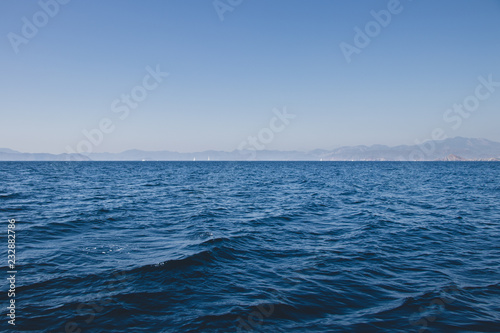 Fototapeta premium Sea, Distant Land, and Sky