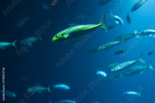 Fototapeta premium Sea fish in blue light. Underwater harmony.
