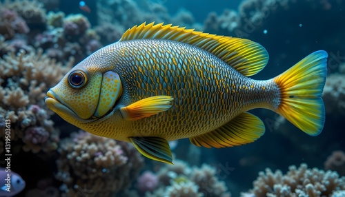 Naklejka premium sea fish in coral reefs have developed distinct adaptations such as camouflage, mimicry, and impressive survival strategies to thrive in their underwater environment See Less By pixelinlove