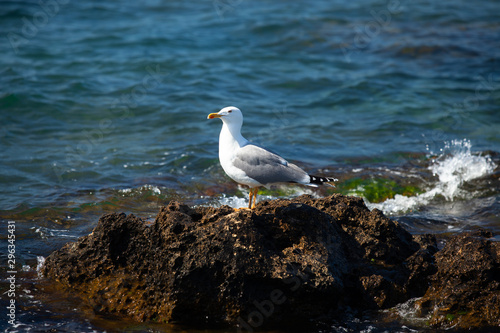 Fototapeta premium Sea gull resting on a small island.