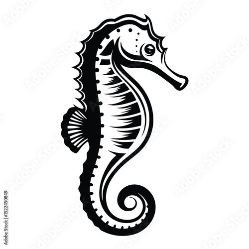 Fototapeta premium Sea Horse Illustration, Hippocampus, Black and White, Marine Life, Isolated