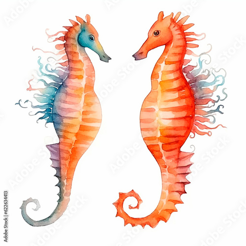 © Andrii Yablonskyi, Fototapeta premium sea ​​Horse set watercolor on a white background created with Generative Ai