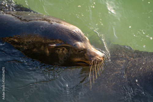 Obraz premium Sea ​​lion diving underwater. Sea lion in natural habitat.